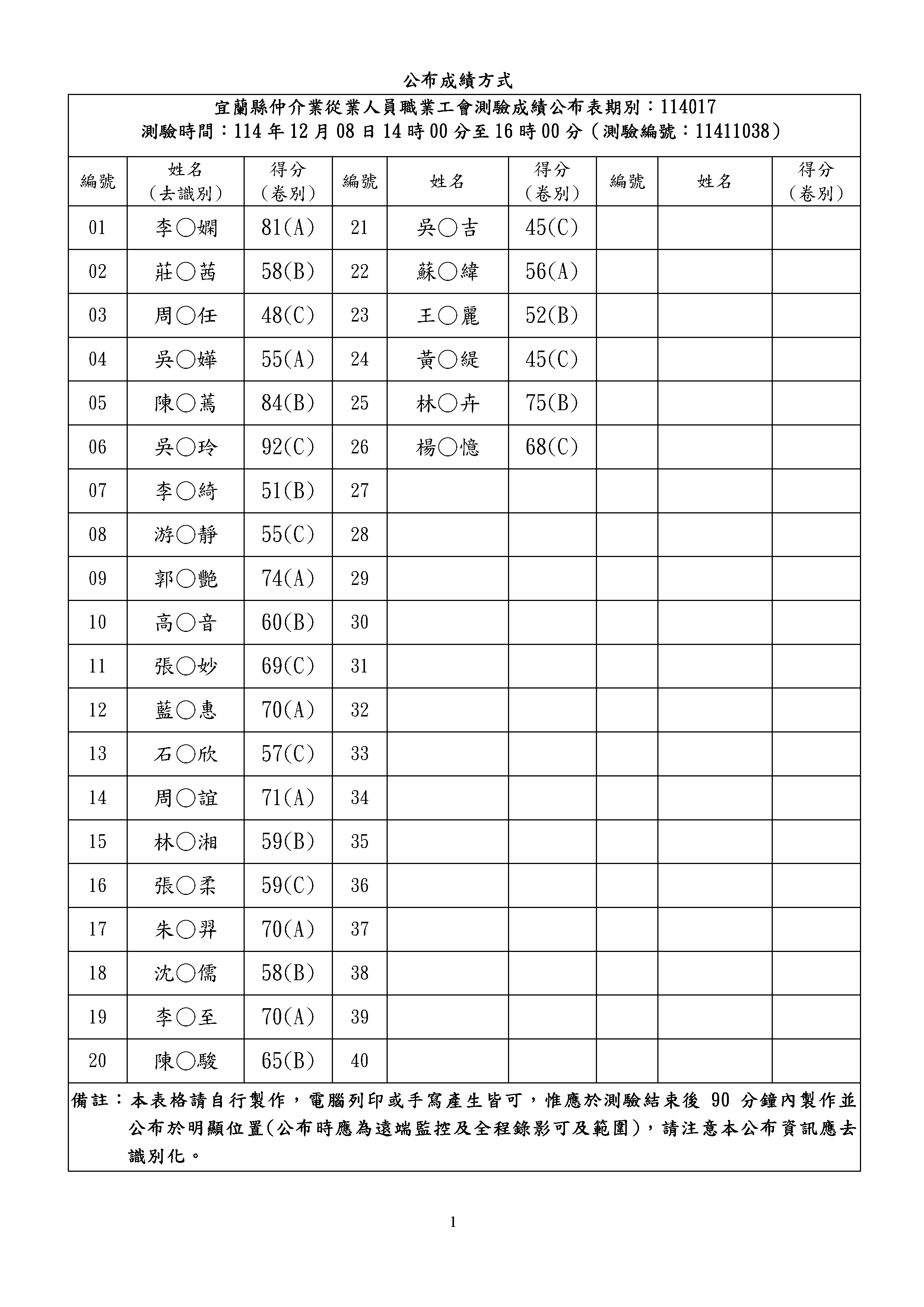 114年12月08日不動產經紀營業員資格取得訓練成績公布
