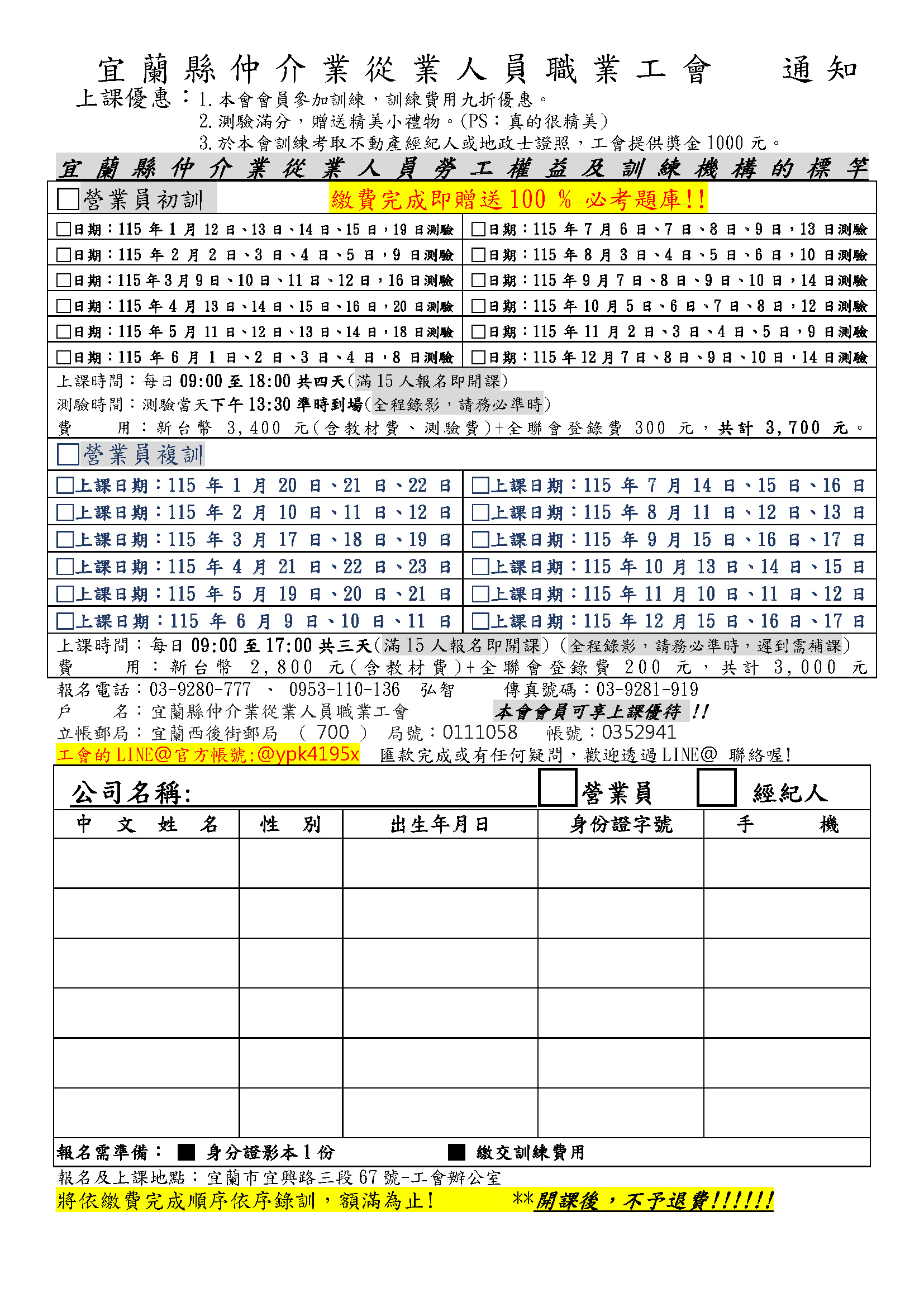 Copyright (C) 2019 宜蘭縣仲介業從業人員職業工會 All Rights Reseved.